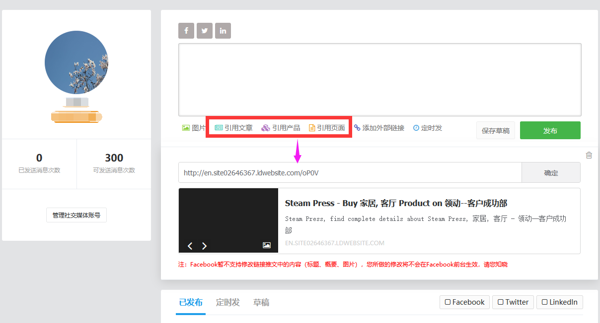 4.当设置完成后,在社交助手中分享相关链接的时候,可以直接使用短链