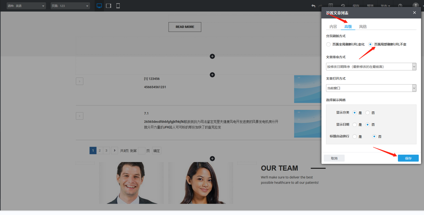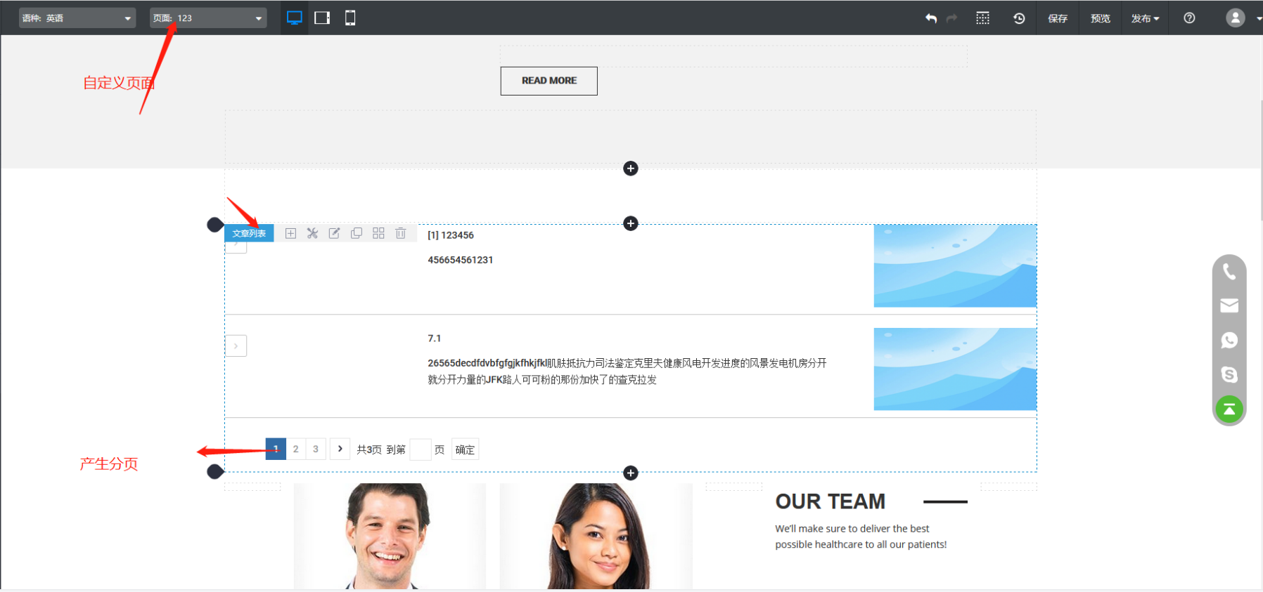 有时候,客户会想要用网站自定义的页面去搭建有文章内容的页面,这个时候就有可能会有用到文章列表组件,然而使用文章列表组件的时候,在文章比较多的情况下会出现文章分页,那么要怎样设置才能在点击文章分页时,跳转的是自定义下的文章页面而不是跳转到系统的文章页面呢?