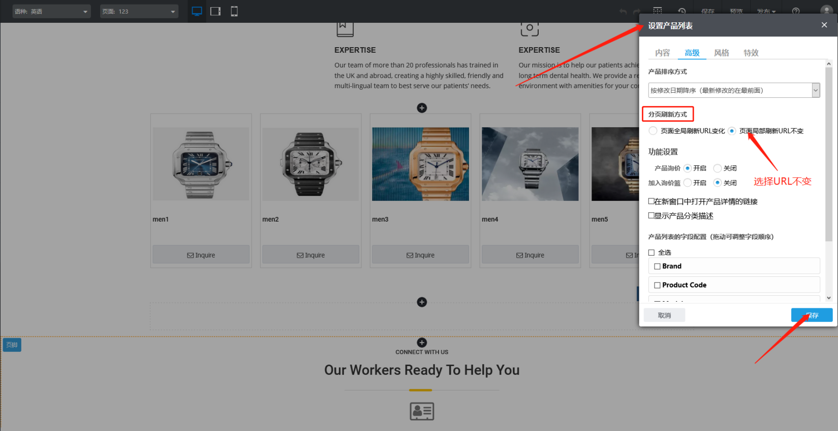 有的时候,在使用自定义的页面搭建关于产品的页面,会有用到产品列表组件时,在产品比较多的时候会出现产品分页,也会出现上述的情况,那么要怎样设置才能在点击产品分页时,跳转的是自定义的产品页面而不是跳转到系统的产品页面呢?