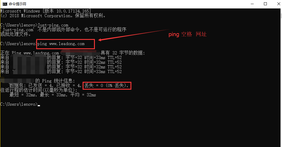 使用方法:在cmd 中键入ping ,显示最后一行(x% loss)就是对目标地址ping包的丢包率。如图: