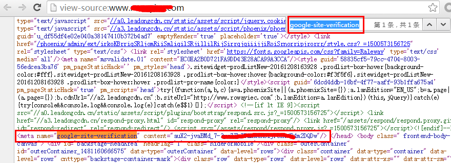 这里介绍一种方法:需要先打开网站,然后用快捷Ctrl+U打开页面源码,然后用快捷Ctrl+F打开搜索框,在搜索框输入验证代码关键词,例如google-site-verification,看能否找到google验证码,若能找到就可以进行下一步了,如果不能找到,可以稍等再等几分钟或者重新发布,直接确认验证代码添加成功再进行下一步;
