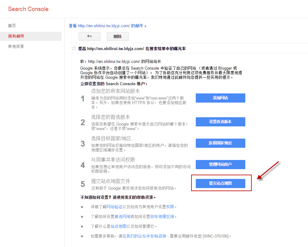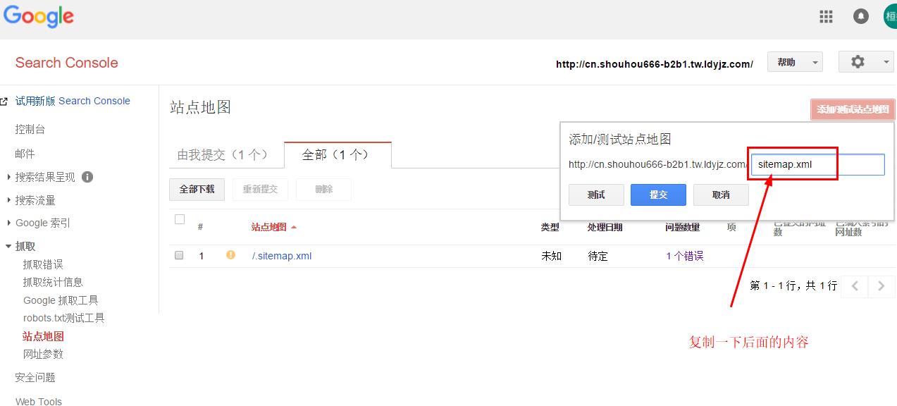 第二步:在google管理员后台,把xml网站地图(sitemap)提交给谷歌;