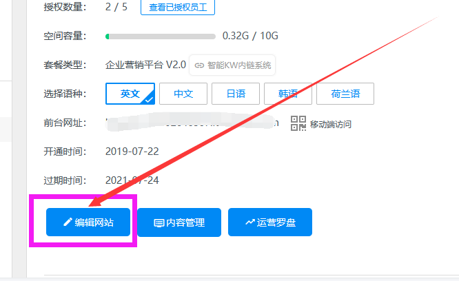 登录支点,点击编辑网站,进入支点网站后台