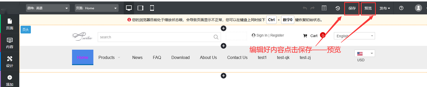 ①进入支点官网——编辑网站——右上角点击保存——预览按钮;