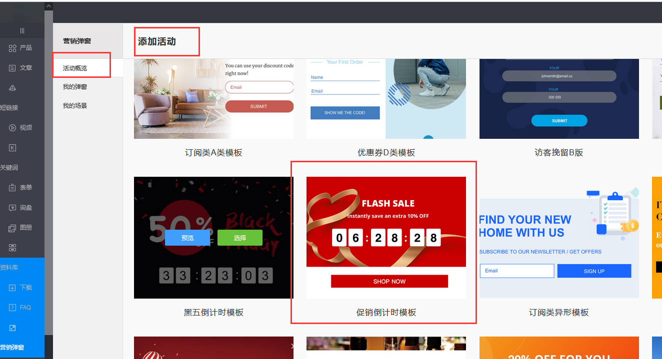 第二步:选择模板——系统模板——促销倒计时模板;