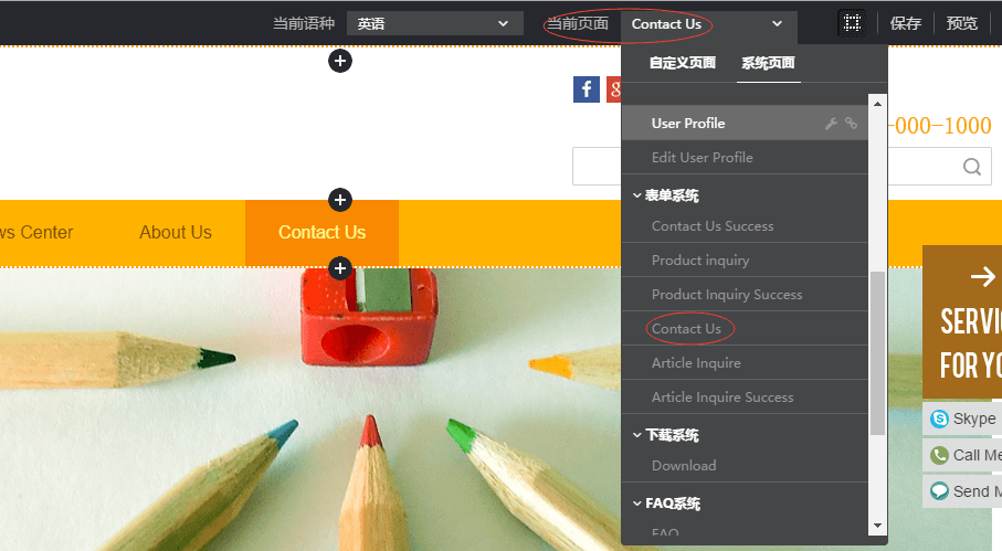 第二步:把要操作的页面切换为当前页面。把鼠标放到“当前页面”四个字眼的右侧区域,弹出下拉菜单,在自定义页面或系统页面中找到相关页面,单击此页面名称(不要单击页面名称后面的按钮),即可切换为当前页面。