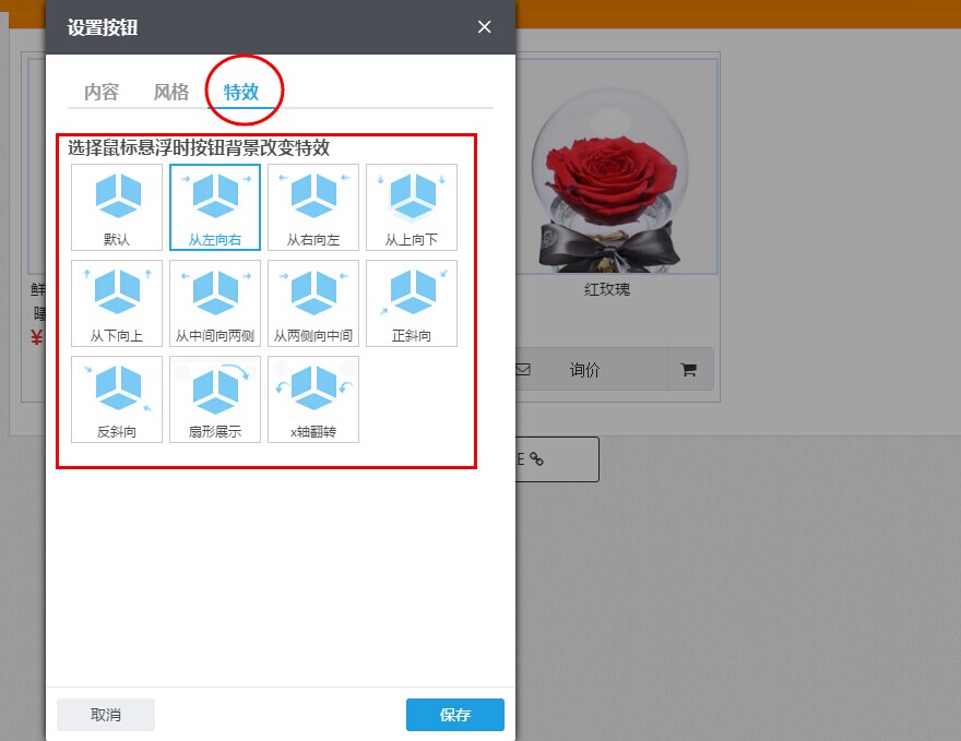 支持设置鼠标悬浮在按钮上时按钮背景改变特效,见下图6。