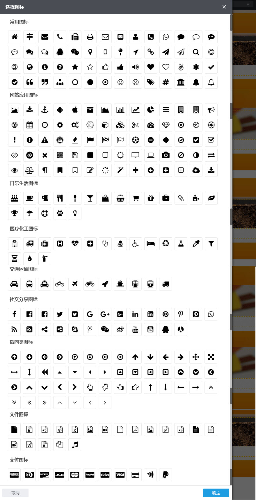 按钮图标:选择了带图标的风格,此处选择的图标才会显示;选择的是不带图标的风格,即使此处选择了图标也不会显示;单击“选择图标”按钮即可选择图标,图标类型丰富多样,如下图3所示;