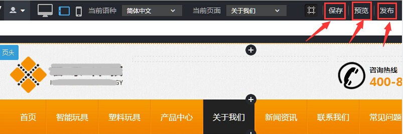 如果需要让访客也看到,请单击页面右上角的“发布”按钮,发布之后稍等两分钟左右即可看网站前台展示效果。