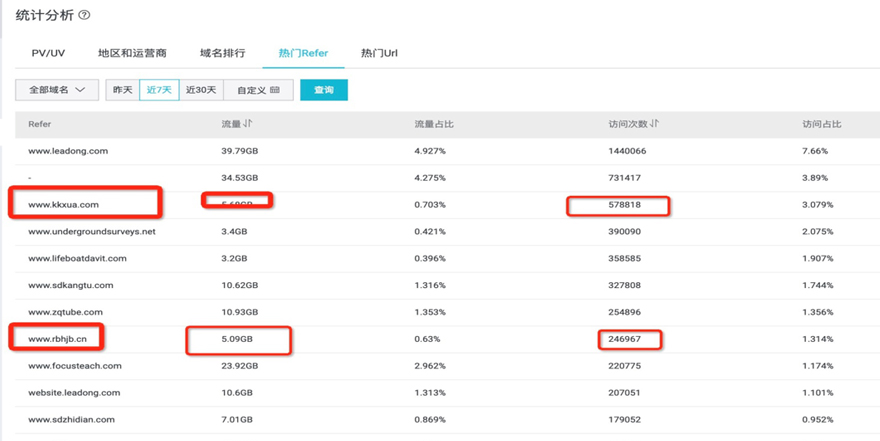 4)损耗正版网站使用的CDN资源流量,导致CDN使用费用上升,如下图所示: