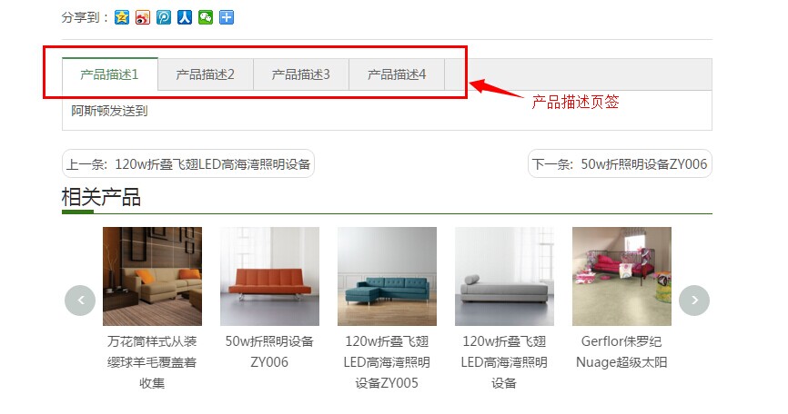产品描述页签指下图所示,如果要修改这里的展示样式,如何修改呢?需要到产品详情组件中去修改。