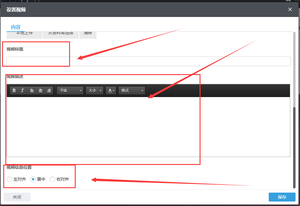 4、上述步骤完成后,添加视频标题、视频描述,设置视频信息位置;