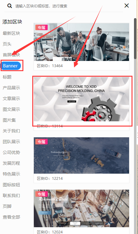第二种、要在banner上展示视频的时候就要用到这样一个区块了,(注:无视频空间的用户不可使用带视频的banner区块哦)