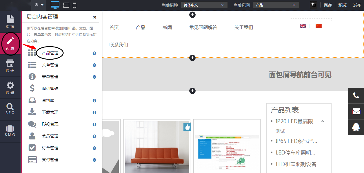 1、单击“内容》产品管理”,默认进去产品管理页面;