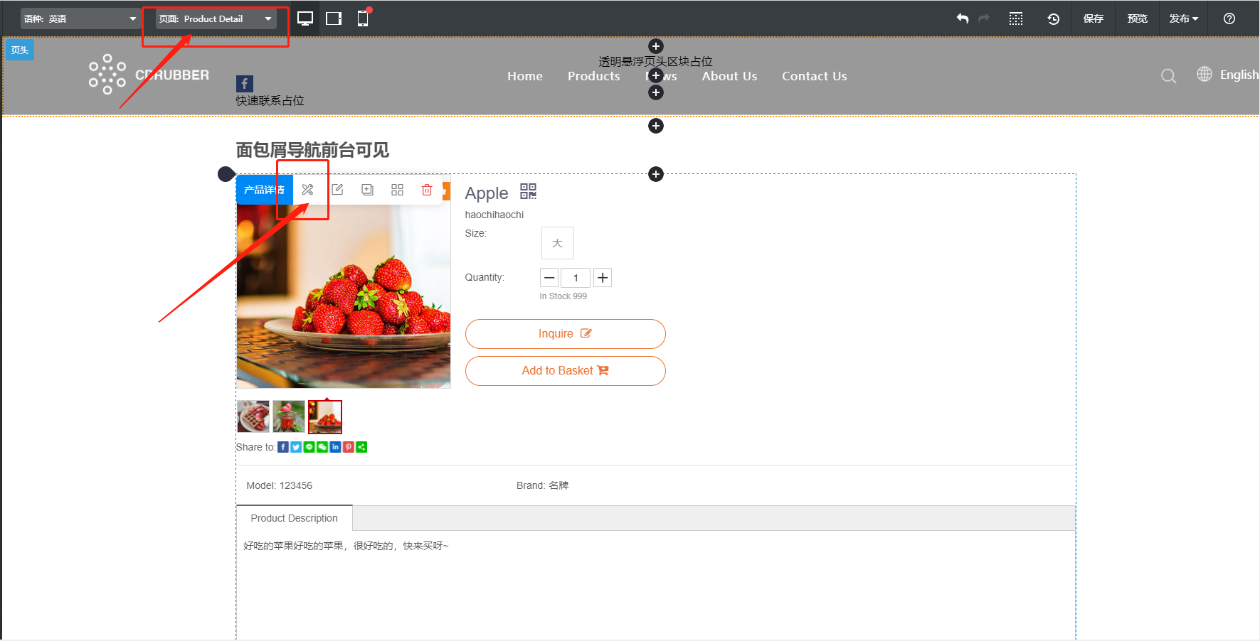 按照步骤添加后,在产品详情页点击设置按钮,如下图所示