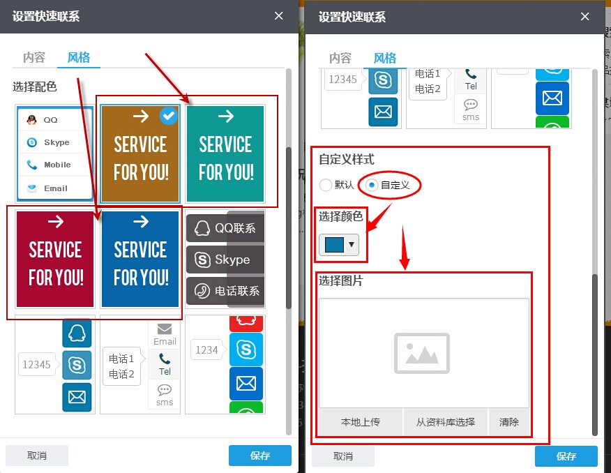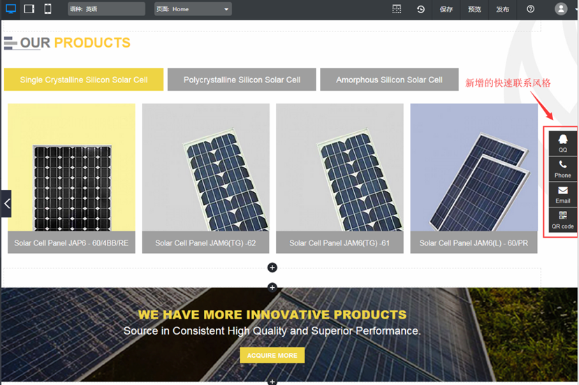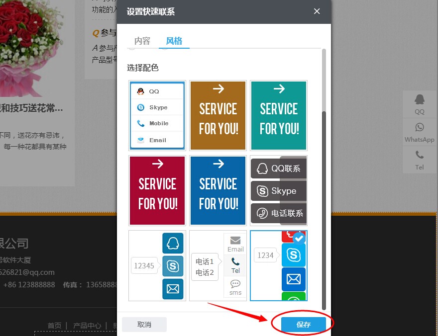 1(1)当用户的网站设计偏向扁平风格时,可以选择使用新增的快速联系组件风格,提高网站风格的美观度和统一性。