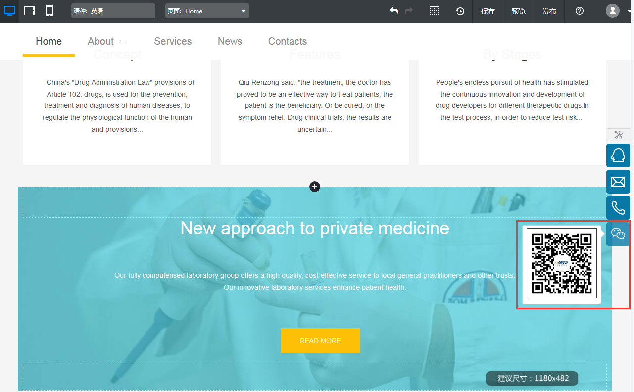 然后可以单击“预览”按钮查看不同终端下展示的效果,如果不合适可以到后台再做修改;