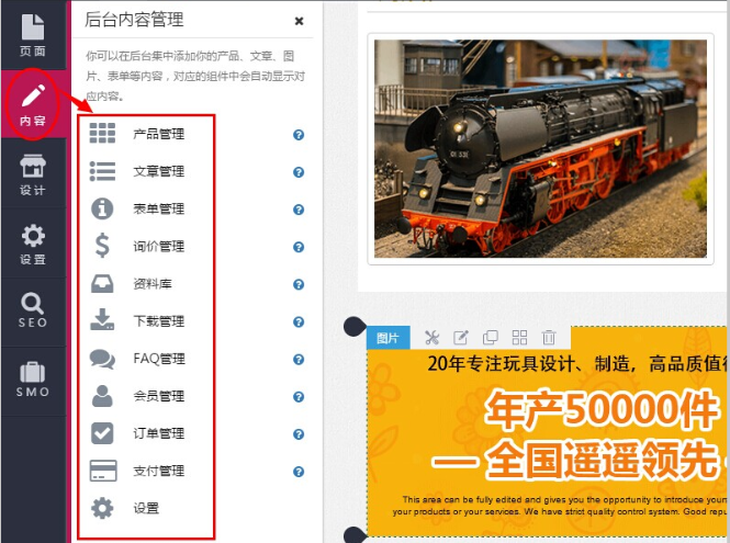 外部链接:可以是本网站以外的链接,也可以是除了“站内页面”那里列出的以外的页面,比如:在“内容”中生成的页面(见图6):产品详情、文章详情、下载分类、FAQ分类。