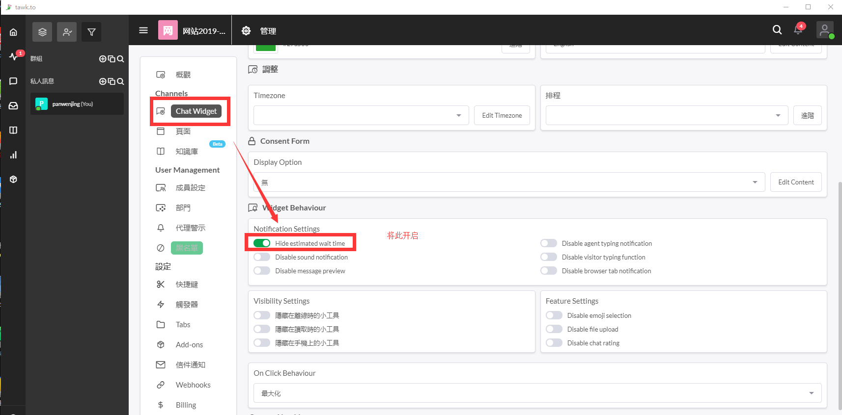 第二步:点击“Chat Widget”,开启“Hide estimated wait time”
