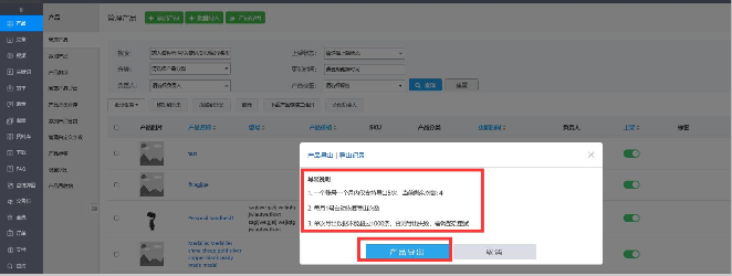 进入“内容管理”--“产品”--“产品管理”--“产品导出”,如下图所示: