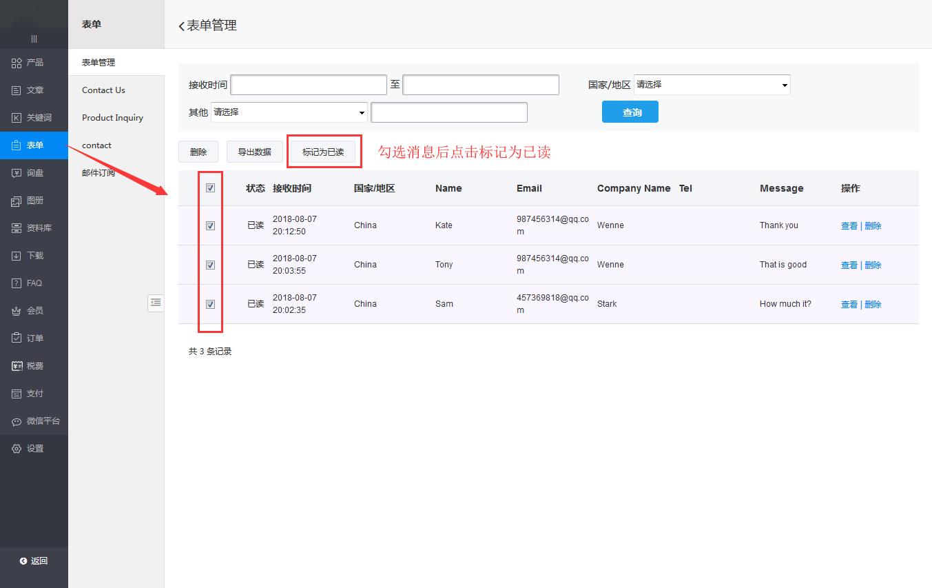 2.表单管理增加批量“标记为已读”功能。