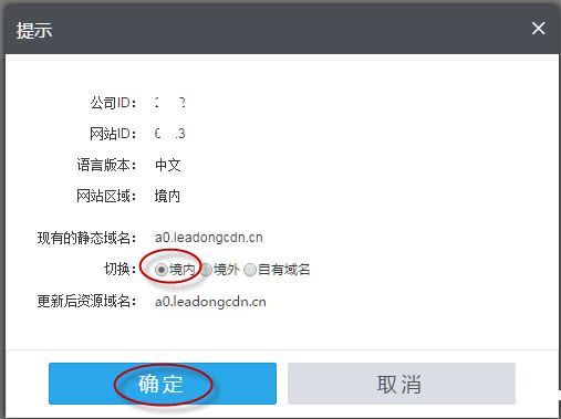 2、切换CDN,以从境外转到境内为例,操作步骤如下: