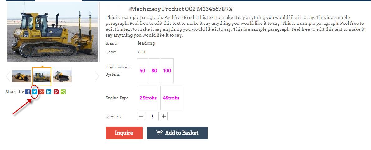 网站产品详情页面或文章详情页面上如果开启了“分享功能”,也可以点分享按钮直接分享到Twitter上。如下图产品详情页面所示: