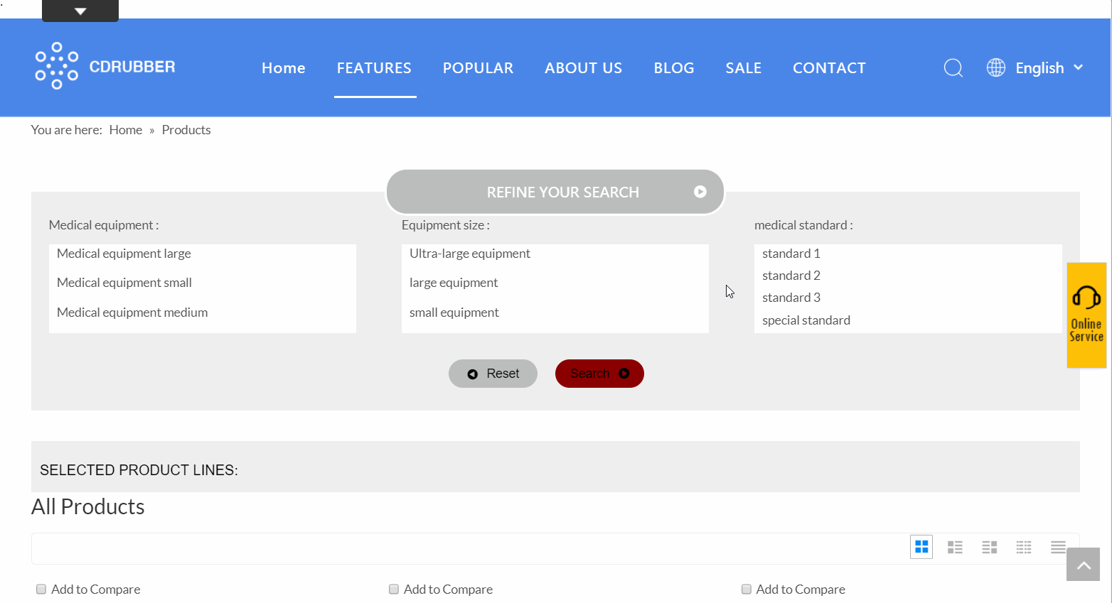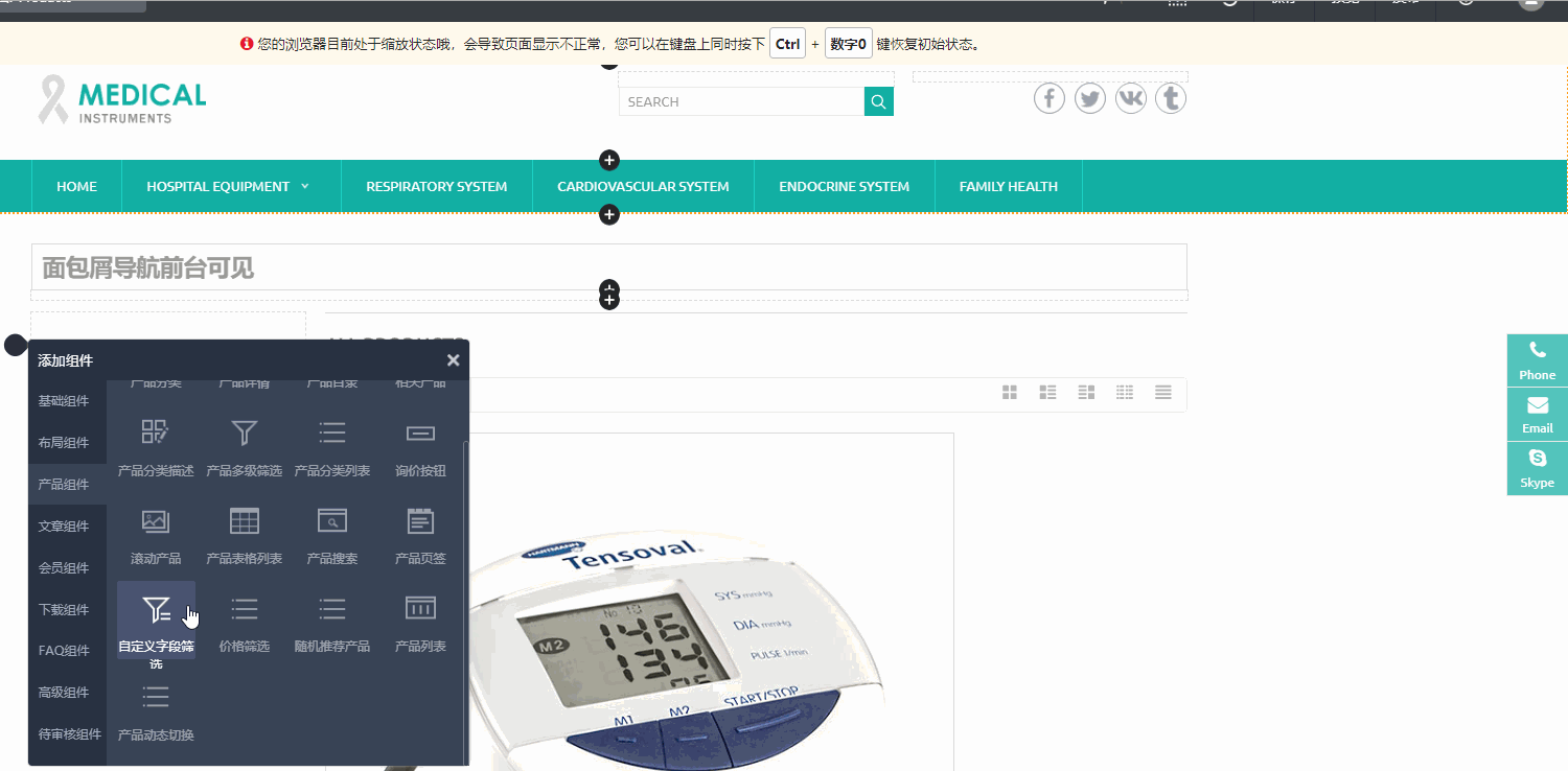 自定义字段筛选组件实现的是在当卖家商城中的产品较多时,可以在产品列表上添加“自定义字段筛选”组件,方便买家根据产品的不同自定义字段来筛选想要的产品。