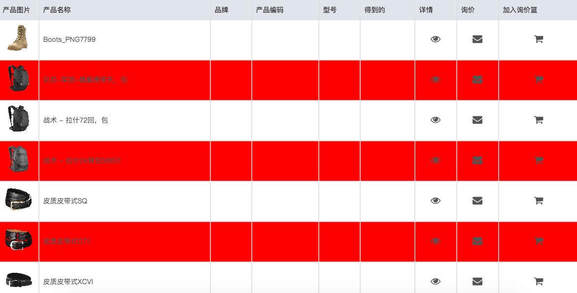 产品表格列表