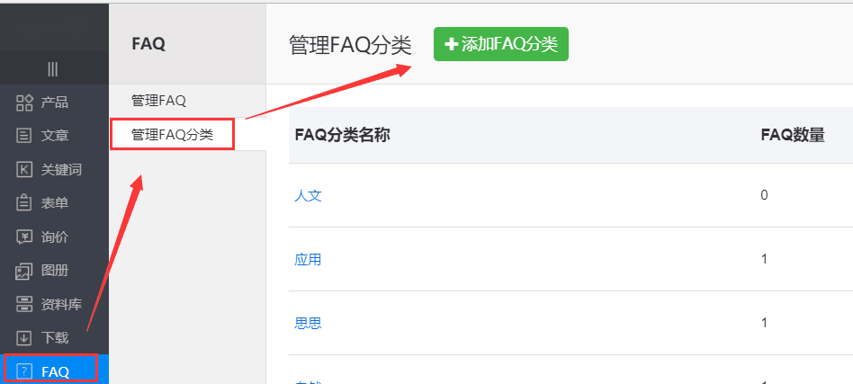 1.添加FAQ分类