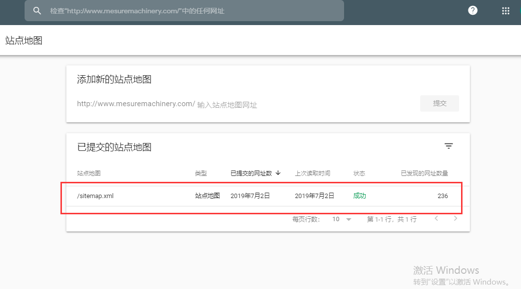 9.会自动显示网址,只需要将sitemap.xml填入,再提交即可