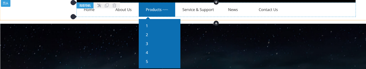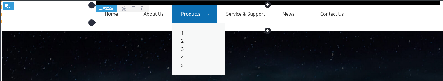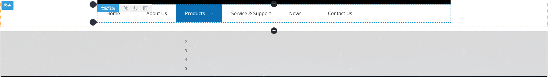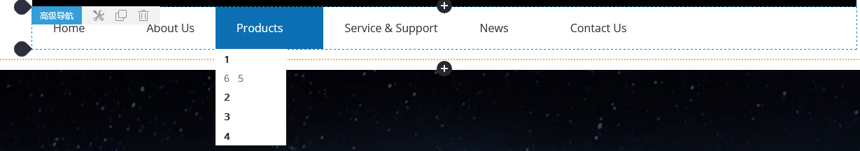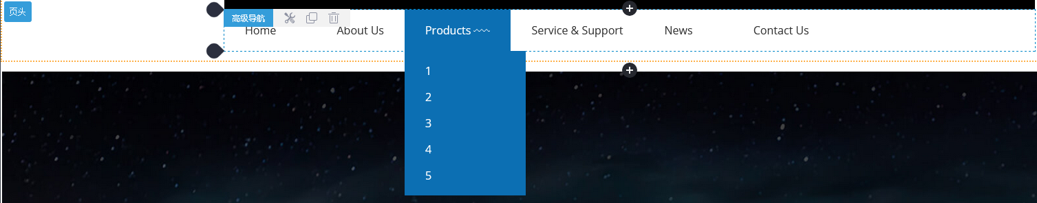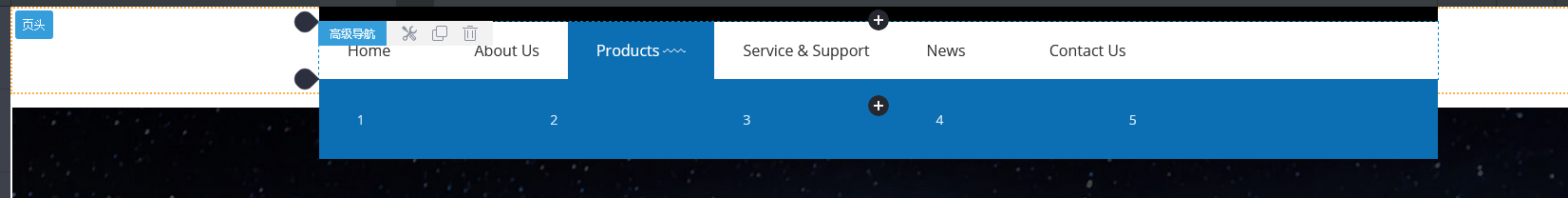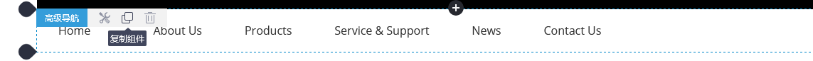 页头或页脚区域的组件每个页面都是共用的,所以,若复制高级导航组件,复制的组件将会在当前组件下方展示出来,可拖动调整位置或继续修改组件!复制过来的组件与原组件是两个独立的个体,修改其中一个,另外一个不受影响;