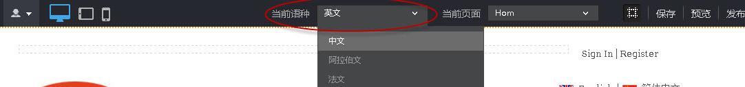 在后台顶部的状态栏中,有一个“当前语种”的下拉菜单,单击要切换的语种即可。
