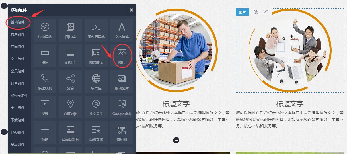 图片组件是在页面上展示一张图片的模块,通过设置图片的描述文字、链接、展示形状、特效等实现丰富的单图展示效果。