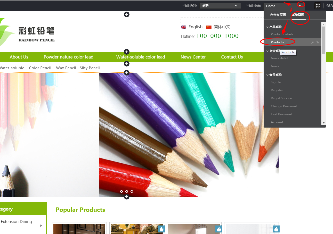我在网站后台添加了产品,但是页面上显示产品分类下为空,怎么办?这种情况多数都是由于产品总列表页面上的产品列表组件只设置了部分产品导致的,在这里设置为全部产品就可以了。具体的操作方法如下:
