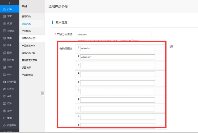 如何添加产品分类的关键词?