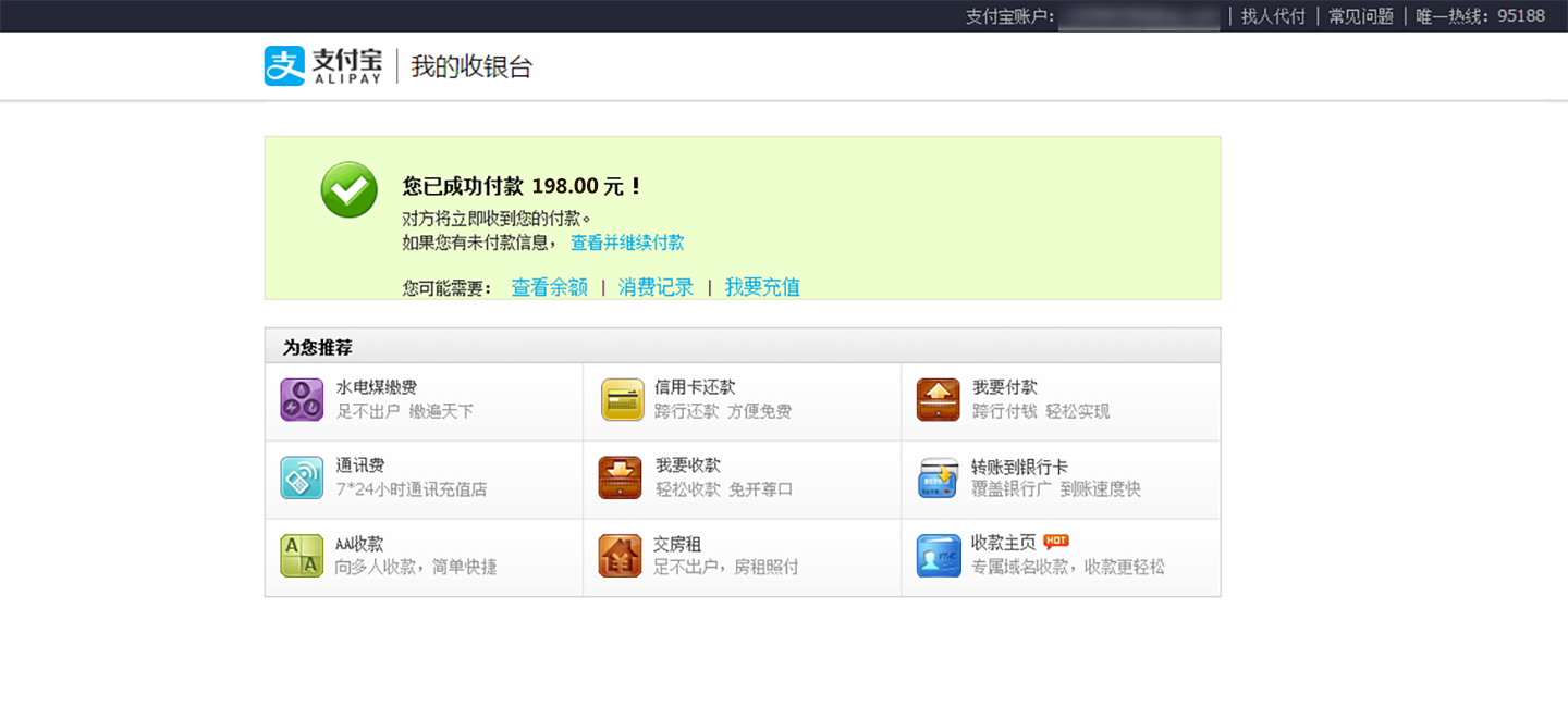 登录支付宝商家服务中心,点击【产品大全】,选择“手机网站支付”或者“电脑网站支付”套餐,填写网站信息申请信息,提交申请支付宝会在三个工作日内完成审核邮件或信息通知您;审核通过后,状态会显示待集成,然后根据以下提示获取PID和key。