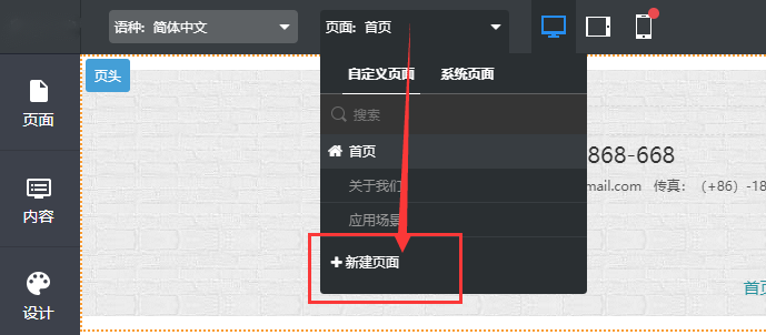 第一步:把鼠标移动“当前页面”左上侧框区域,出现下拉菜单,在自定义页面标签下,有一个“新建页面”按钮,单击此按钮;