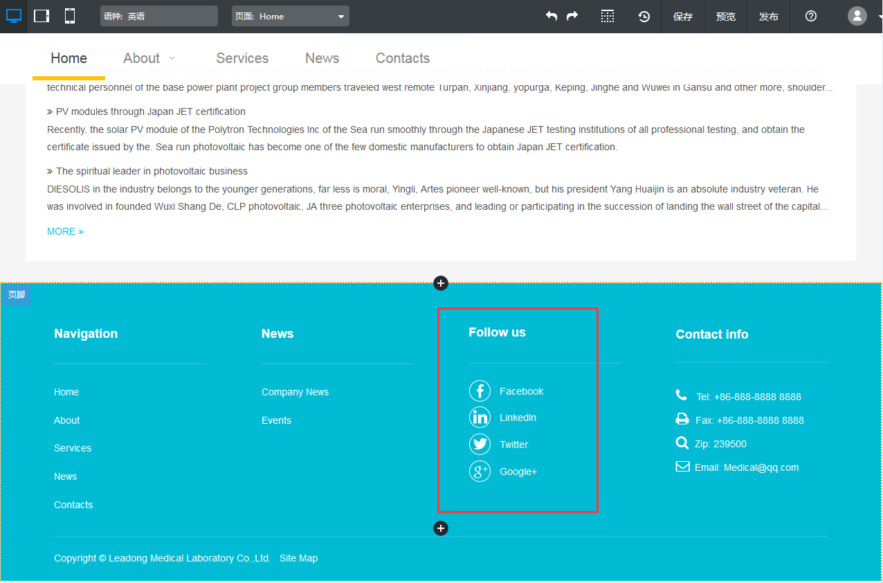 第三步:保存以上操作。这一步至关重要,上面的都设置好以后,单击此页面右上角的保存按钮,若需要发布到网站前台,可以单击右上角的“发布”按钮。