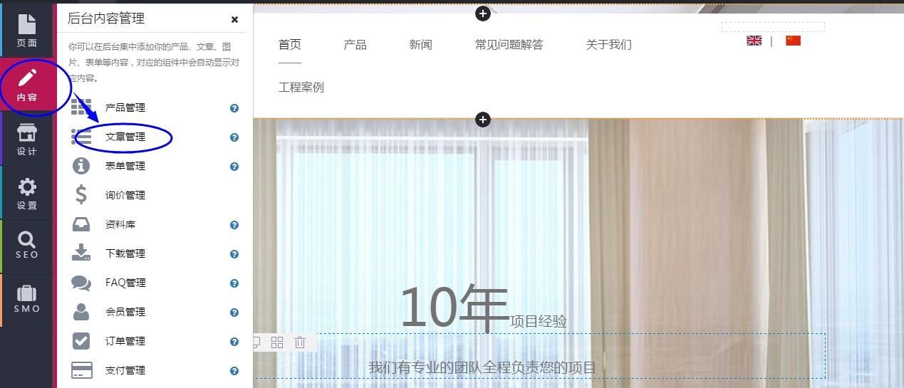第1步:单击“内容”》“文章管理”,默认进入管理文章页面;