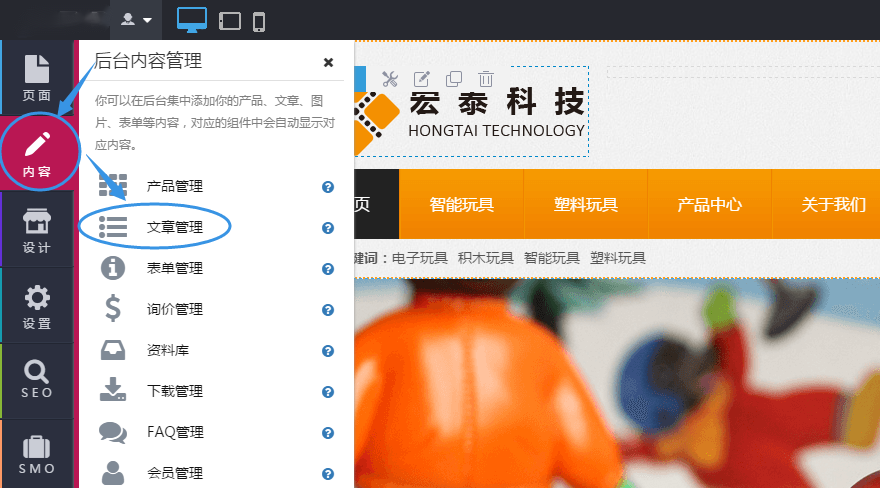 第1步:单击“内容”--》“文章管理”,默认进入“管理文章”界面;