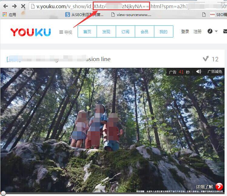 第2部分:取这个视频的id,打开视频播放页面,从页面URL中获取id,不同视频id不一样,如下图所示部分: