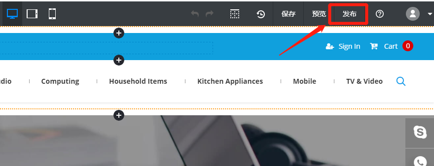 登录支点网站后台→编辑网站→发布,发布入口如下图所示: