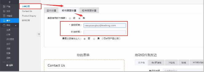 第二步:登录支点后台,检查表单管理中,是否开启了邮件提醒功能,设置的收件人是否正确,如下截图所示。建议使用自己的企业邮箱来接收询盘邮件。不建议使用QQ邮箱,因为QQ邮箱被拒信的可能性比较大。