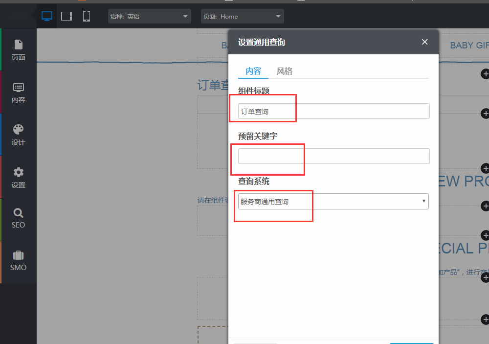 8.根据需求填写相应的标题,预留关键字,查询系统选择服务商通用查询;