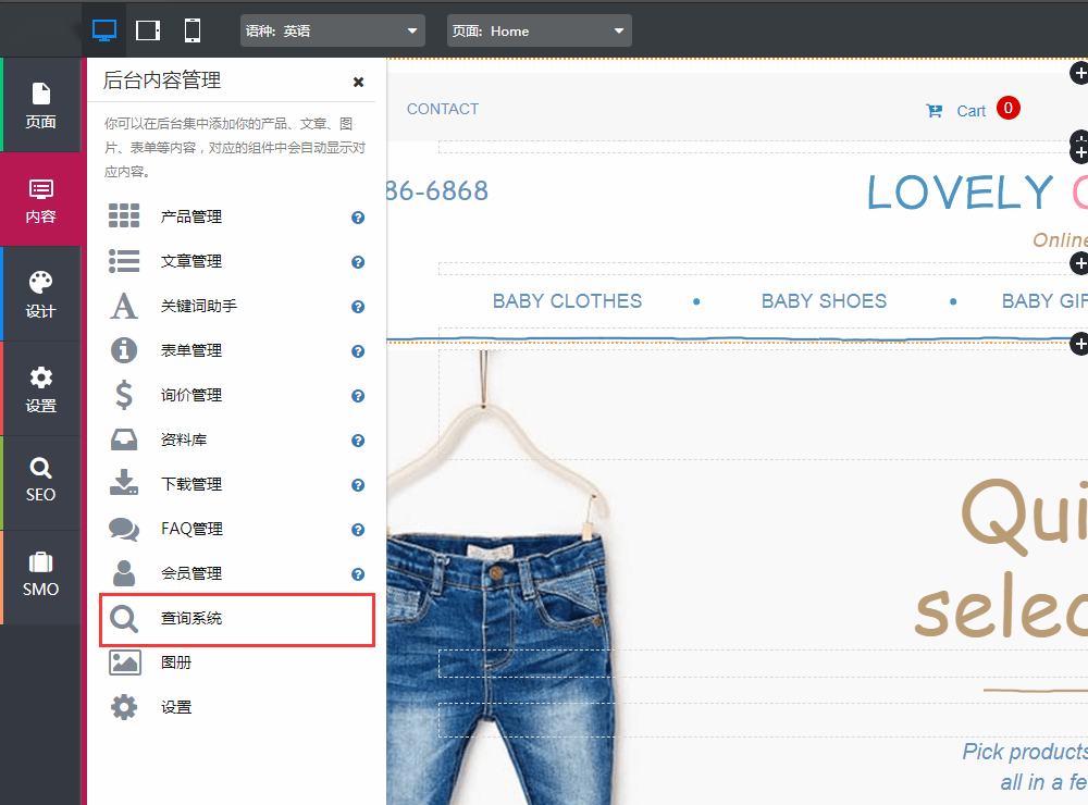 1.开通此功能后,登录网站后台,在左侧菜单栏内容-》系统查询(此功能需付费开通后才有此入口);