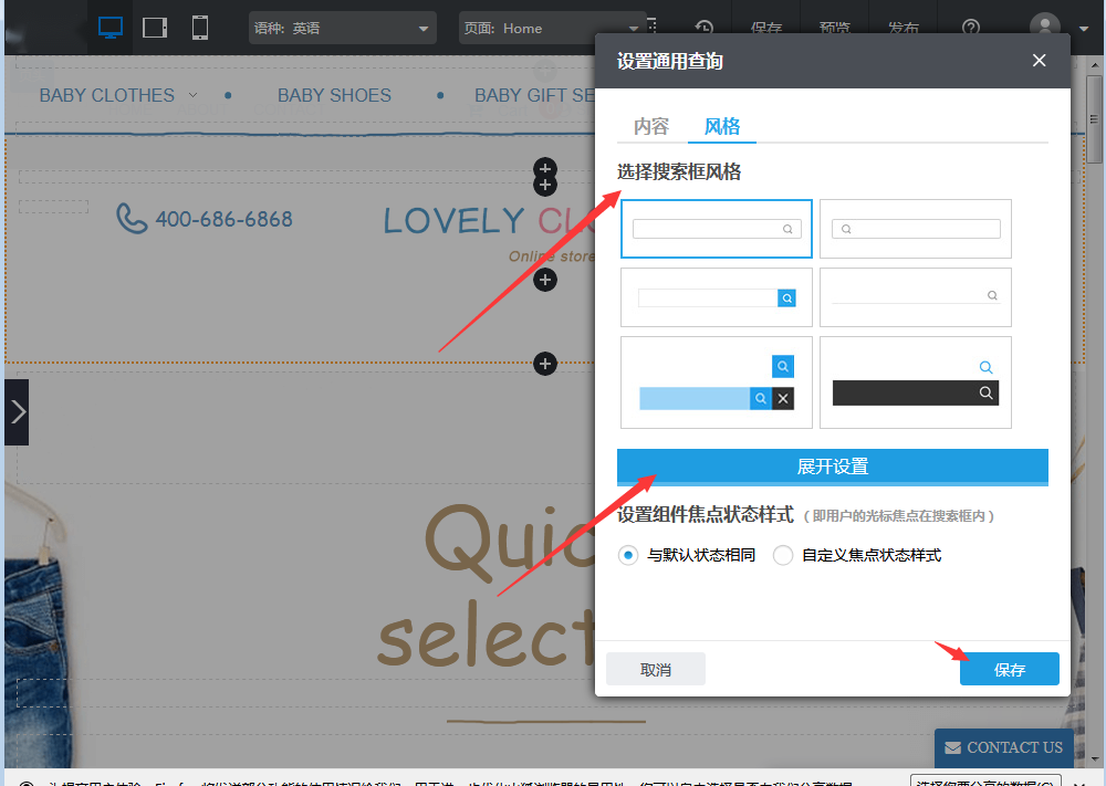 9.在风格里设置想要展示的风格,展开设置可以设置边框颜色宽度,字体颜色大小;