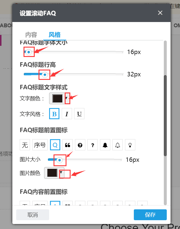3.如何设置滚动FAQ组件?