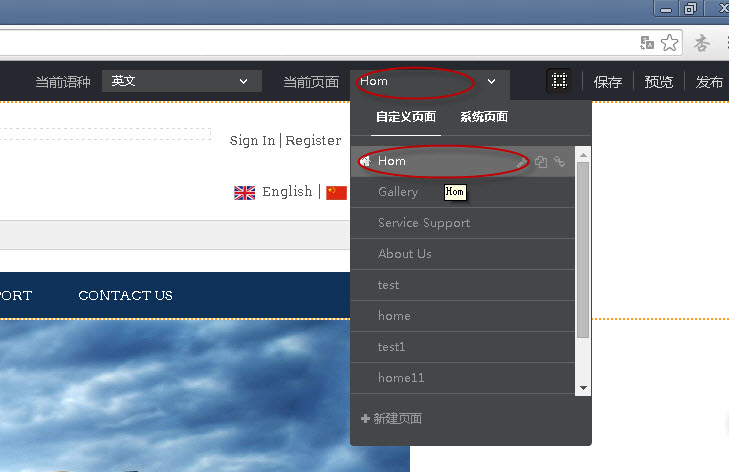 1、把要设置背景图片的页面设置为“当前页面”。把鼠标放到当前页面区域,出现下拉框,找到需要修改的页面,然后单击此页面即可切换为当前页面;