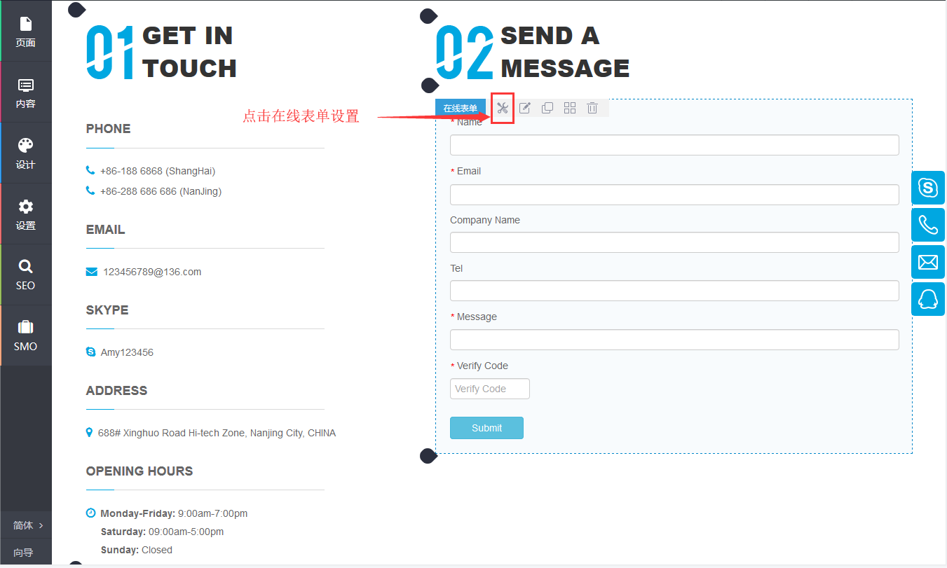 【操作方式】登录进入支点云-》编辑网站-》在线表单设置。